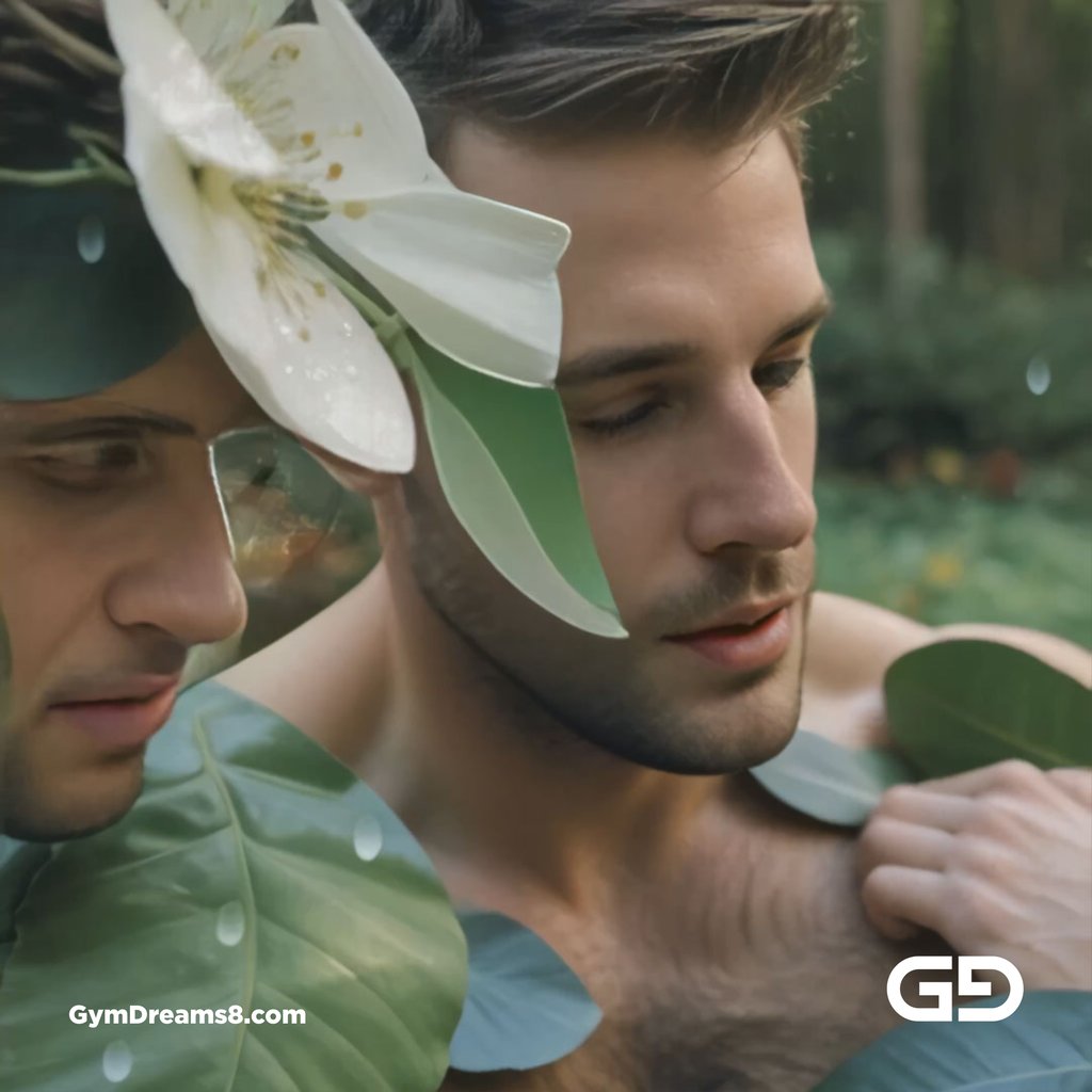 A kiss and a passionate embrace between two gay men started a chain reaction and a visual journey — mixed with flowers, water drops, and ethereal light. Abstract surreal photography realized through AI. Rendered with Stable Diffusion, Deforum, and Juggernaut Aftermath.