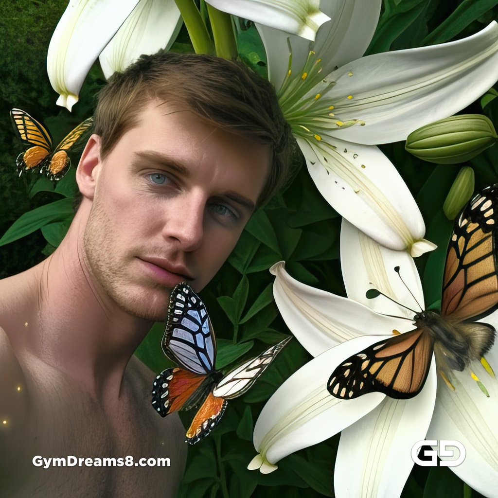 White Lilies and Butterflies. Portrait of a man in a field of white lilies. Stable Diffusion, Deforum, Virile Reality v3 Beta 3.